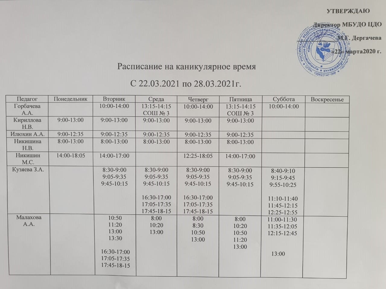 ДиректорДергачева Марина Геннадьевна